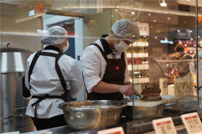肉禽区正在保留部门离猪肉以满脚老顾客习惯的同时,当地黑猪,以及现煎牛肉系列、进口牛肉、潮汕牛肉系列,并新增便利快速菜和半成品菜。水产区则新增海鲜厨房办事,处理消费者处置大海鲜的难题,同时引入三文鱼系列、切片鱼系列和冰鲜鱼系列,满脚多元化需求。烘焙取熟食区域也送来了显著扩容,运营模式改为自营,现场制做的SKU大幅添加。烘焙区全面升级,以现烤商品为从,植入网红产物如榴莲千层、金秋木樨丰收欧包、现烤月饼等。熟食区引入九多肉多、双汇东来同款熟食,新增牛肉卷、烤鸭、现炒板栗、烤鸡、三文鱼寿司、汉堡、披萨、凉皮等新品,并通过明厨亮灶体例让食物平安可视化办理。