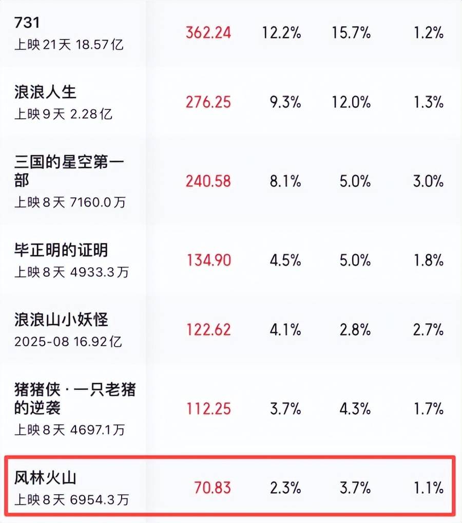 谁说国庆档必出爆款?本年这波操做实的令跌眼镜!连影后辛芷蕾坐镇的《刺杀小说家2》都扛不起票房,2。8亿的累计成就连前做脚后跟都摸不着,预测总票房4。13亿的数据更是惨得没眼看。更绝的是金城武,梁家辉的《风林火山》,八大影帝联手竟然八天票房不到7000万,这扑街姿态也太清奇了吧!
